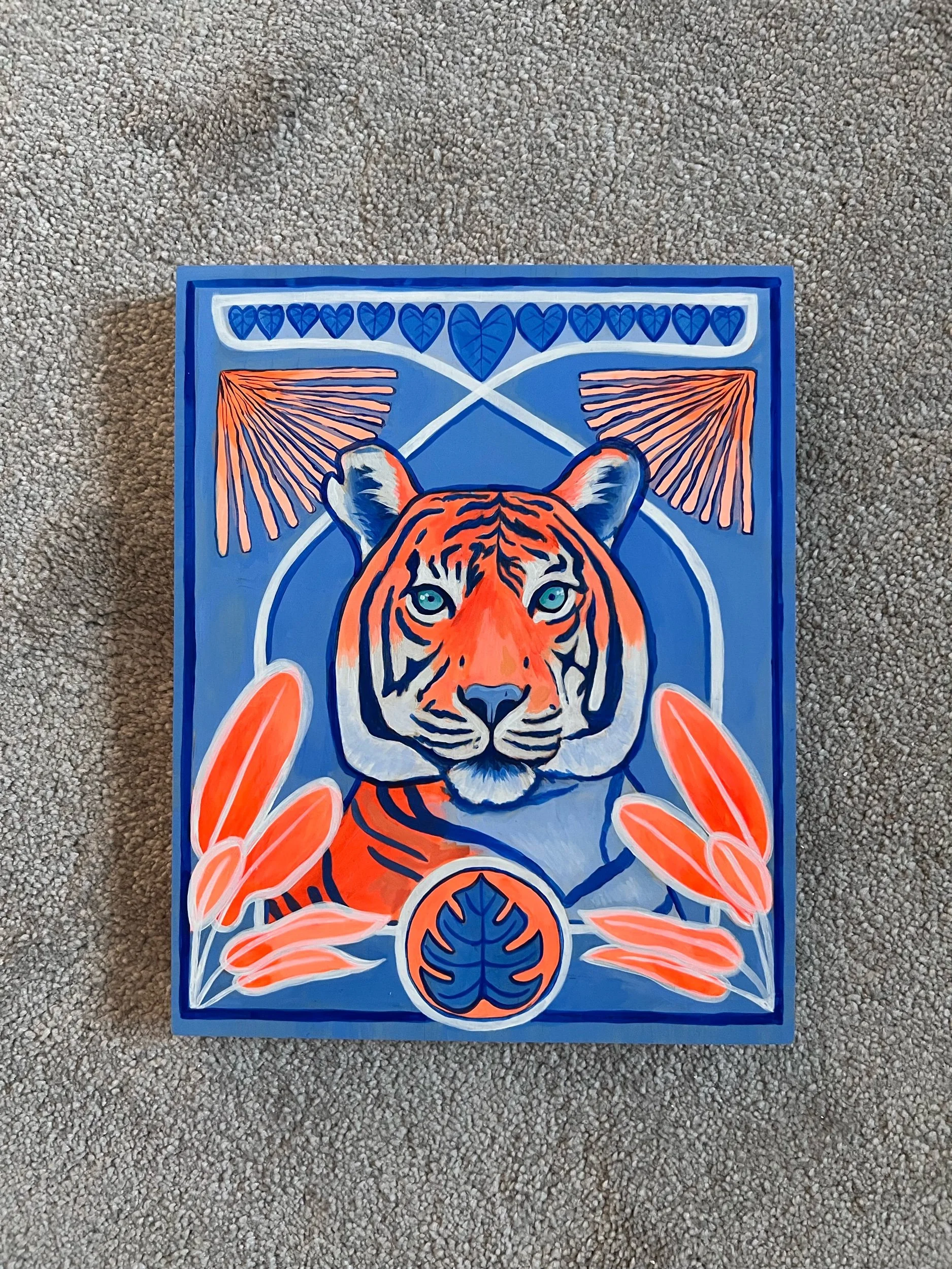 Shop › Tiger on wood panel Image 1 of 3 Image 2 of 3 Image 3 of 3 Tiger on wood panel £80.00 8” by 10” Acrylic on wood panelAn art nouveau style tiger using a minimal colour palette Add To Cart Added! 8” by 10” Acrylic on wood panelAn art nouveau style tiger using a minimal colour palette